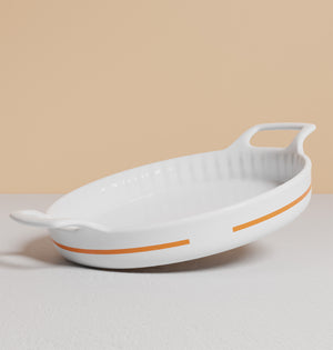 Dans un plat à gratin, commencez par ajouter les poires puis versez votre appareil.