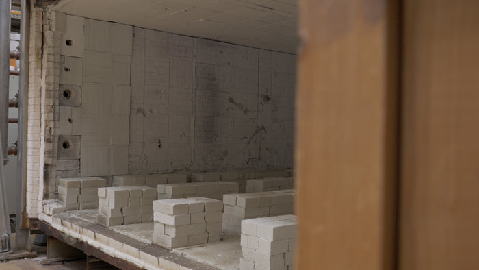Une fois démoulés, les produits, appelés dégourdis, sont cuits à 980°C pendant 23h.