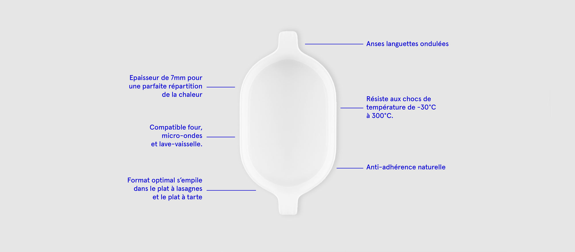 Un plat ovale pensé pour 2 à 4 personnes. En porcelaine émaillée. 100% français. 100% recyclable. Naturellement anti-adhérent. Sans aucun produit chimique. Ultra résistant. Supporte tous les chocs.